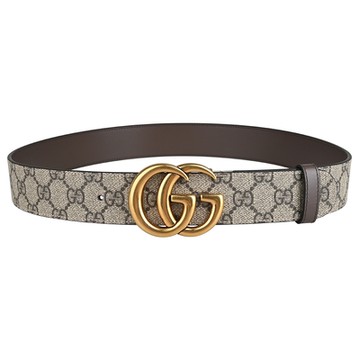 GUCCI 古馳 Marmont 咖啡色皮革雙G防水布皮帶(90cm)