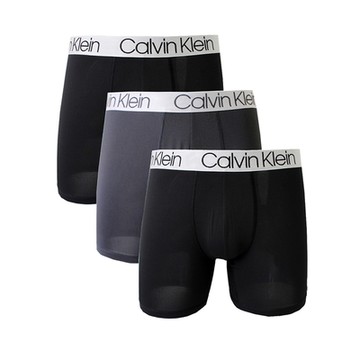 【Calvin Klein】CK超細纖維長版四角男內褲三件組(黑灰色系)