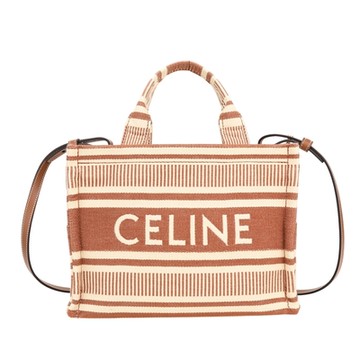 CELINE 賽琳 CABAS THAIS 小型 條紋字母帆布肩背手提托特包(磚紅)
