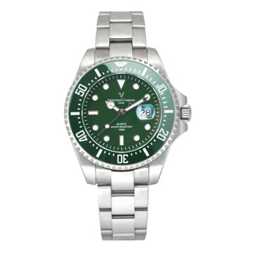 Valentino Coupeau 范倫鐵諾 古柏 陶瓷水鬼腕錶【銀色/綠面/鋼帶】