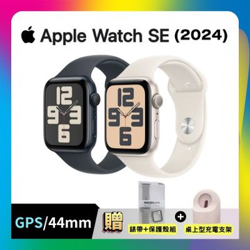 Apple Watch SE 2024 GPS 44mm (M/L) 鋁金屬錶殼配運動型錶帶 搭雙豪禮