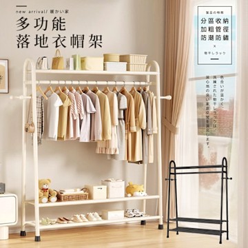 STYLE 格調 100面寬-160cm加高加粗耐重多功能落地分區收納衣架/收納架(臥室/宿舍/玄關/客廳)(止滑腳墊款)(2色可選)