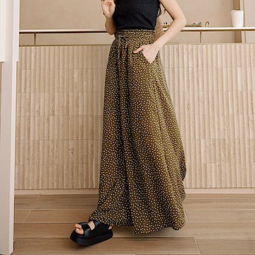 OB嚴選-雪紡波點腰鬆緊綁帶寬褲裙《BA7701-》