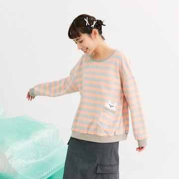 【Dailo】口袋熊大條紋落肩長袖衛衣 藍 黑 桔