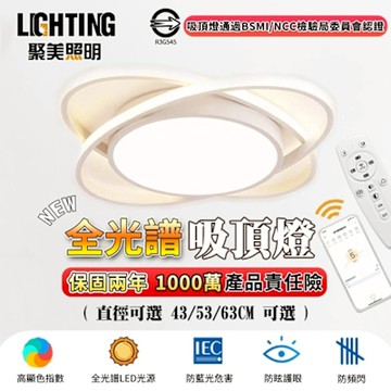 【聚美照明】吸頂燈 智能護眼臥室燈 簡約客廳造型吸頂燈 app遙控無極調光 防藍光高顯色防頻閃電燈 臥室燈(台灣品牌 售後保障)43CM 4200lm