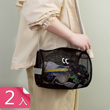 【荷生活】大開口透氣瀝水網眼圓筒包 大眼睛造型洗潄用品耐用斜背包-2入組