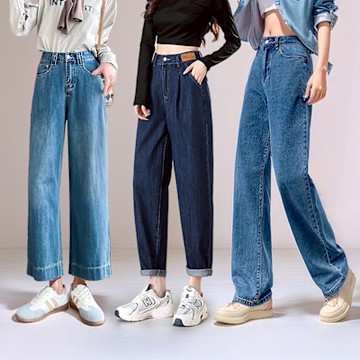韓版褲子高腰寬松直筒牛仔褲女春季新款百搭顯瘦學生闊腿褲女1入