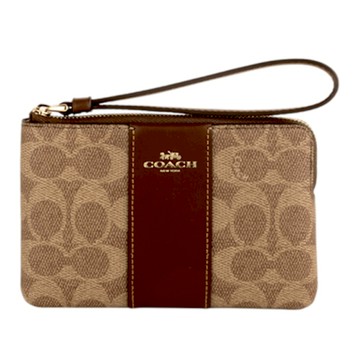 COACH 經典C LOGO手拿包/零錢包(直紋焦糖)