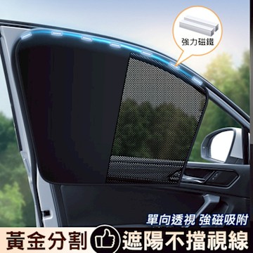 車用半網紗磁吸遮陽簾(一對) 汽車防曬隔熱窗簾 黑膠布+網紗雙拼側簾