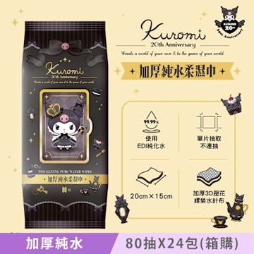 Sanrio 三麗鷗 酷洛米 加蓋加厚純水柔濕巾/濕紙巾 80 抽 X 12 包 - 20 週年特別款 特選加厚壓花珍珠網眼布 超溫和配方零添加