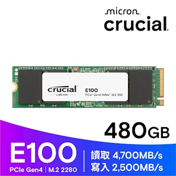 美光 Micron Crucial E100 480GB Gen4 PCIe M.2 SSD 固態硬碟 CT480E100SSD8