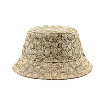 COACH 滿版CC Logo 緹花布漁夫帽 XS-S(卡其色)