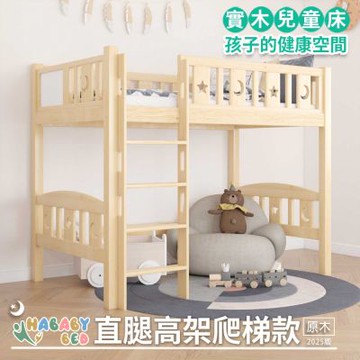 【HABABY環安家居】兒童高架床 (原木) 直腿爬梯款-標準單人尺寸(上下舖、床架、成長床 、兒童床架、台灣製、無毒家具製造商)