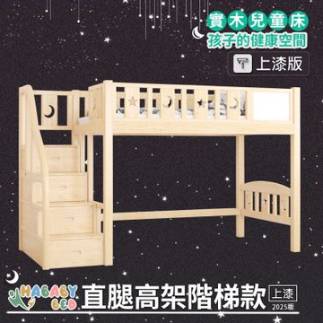 【HABABY環安家居】兒童高架床 (升級上漆版) 直腿階梯款-加大單人尺寸(上下舖、環保水性漆、床架、成長床 、兒童床架、台灣製、無毒家具製造商)