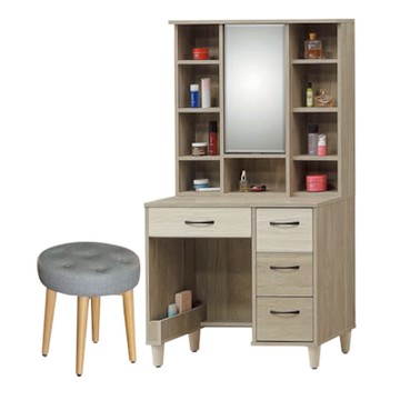ASSARI-尊品3尺化妝桌椅組(寬92x深40x高156cm)灰橡