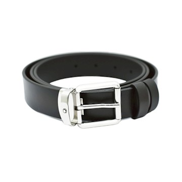 MONTBLANC 萬寶龍 銀釦頭深棕暈染漸層皮帶 黑色 131185 BR/SF