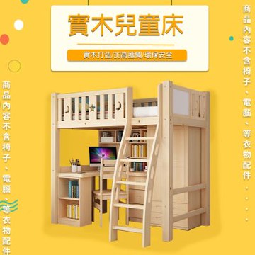 【HABABY環安家居】兒童高架床 (原木) S腿爬梯款-標準單人尺寸(上下舖、床架、成長床 、兒童床架、台灣製、無毒家具製造商)
