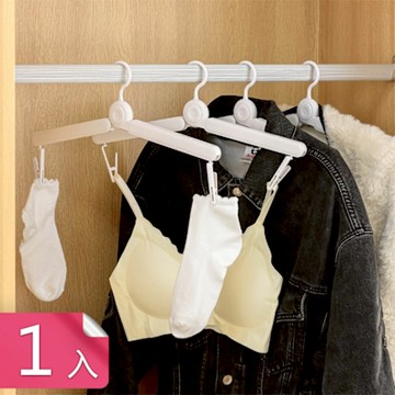【荷生活】圓弧護肩不鼓包附夾子摺疊衣架 旅用便攜承重耐用摺疊晾衣架-1入組