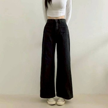 A|立體打褶低腰水洗牛仔寬褲(兩色)