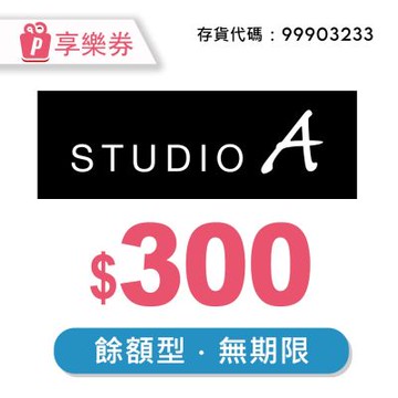 【STUDIO A】 300元好禮即享券 (一次抵用券)
