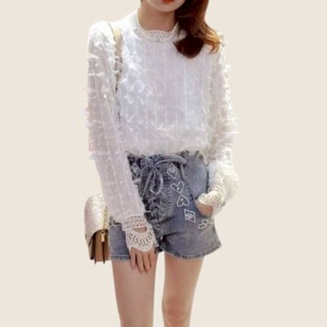 時尚雅妮網鉆水晶長袖亮閃閃網紅抖音短款亮鉆網衫滿鉆外搭上衣