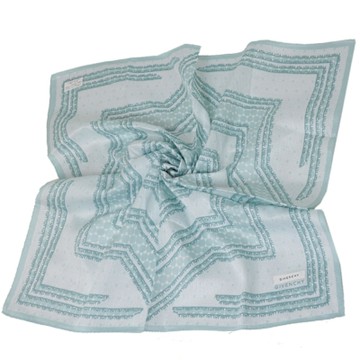 GIVENCHY 優雅蕾絲花紋圖騰字母LOGO棉質大帕領巾(湖水綠系/58CM)