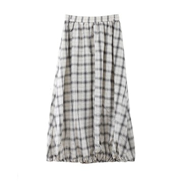自然織紋格紋鬆緊腰 A 字中長裙694589