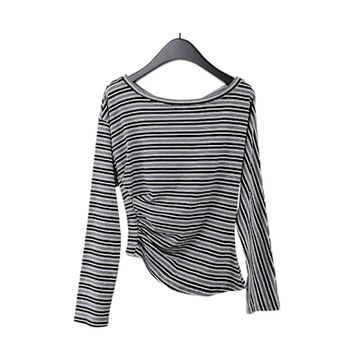 5th STREET|女裝|條紋後交叉設計針織上衣|灰色