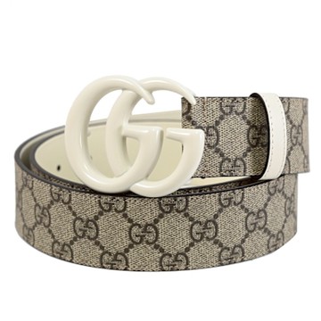 GUCCI 經典GG Marmont 印花帆布雙面用皮帶(卡其)