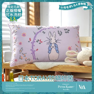【PETER RABBIT 比得兔】比得兔與V&A博物館 日本TORAY防蹣抑菌可水洗枕-任選(1入/台灣製/抗菌枕/枕頭)