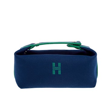 HERMES 愛馬仕 新款 Bride-a-Brac case帆布雙色提把收納手提包 (藍綠色/小號)
