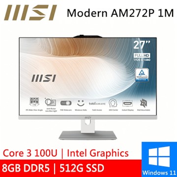 微星 Modern AM272P 1M-860TW 27型 白(Core 3 100U/8G/512G SSD/W11)