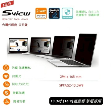 Sview 全功能新版 13.3 吋 寬螢幕 抗藍光 抗菌螢幕 筆電專用 防窺片
