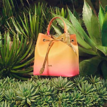 Alviero Martini 義大利地圖包 夕陽漸層水桶包24cm-橘粉色