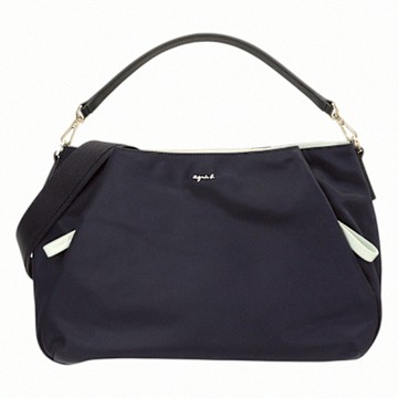 agnes b. agnes b.前雙側拉鍊尼龍三層手提/斜背包(海軍藍)中