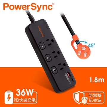 [家速配]6開6插滑蓋防塵防雷擊延長線1.8M-TPS366DN0018
