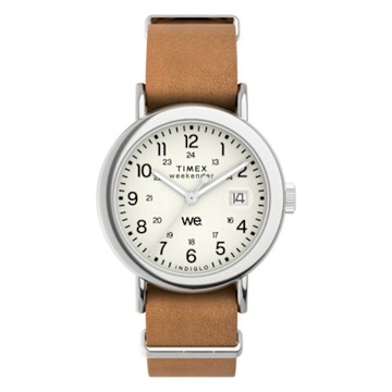 TIMEX 天美時 週末系列 37毫米 休閒風格 皮革錶帶腕錶 (奶油x棕 TXTW2W86500)