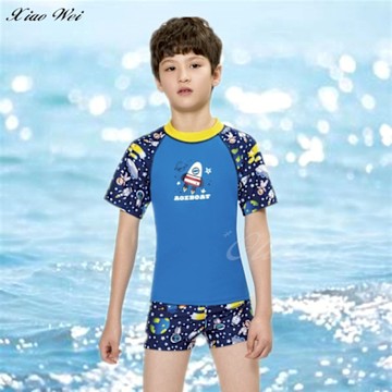 新款卡通大中小男童泳衣泳褲時尚可愛學生防曬溫泉短袖男童游泳裝