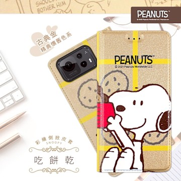 【SNOOPY/史努比】OPPO Reno10 / OPPO Reno10 Pro 共用 彩繪可站立皮套(吃餅乾)