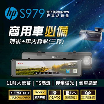 【福利品】HP 惠普 S979 電子後視鏡GPS行車紀錄器(三錄)【贈128G記憶卡】