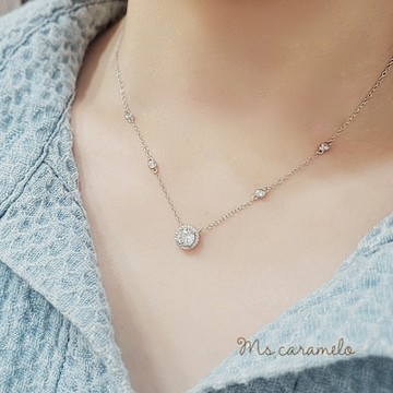 【焦糖小姐 Ms caramelo】925純銀鍍K白 鋯石項鍊