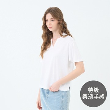 白色 套頭V領貫頭衣 立體絨毛質感亞麻 夏季方形短袖上衣T恤