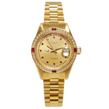 Ogival 愛其華 天星 晶鑽金色腕錶/紅寶石-女錶-贈送愛其華超薄陶瓷錶-黑白選1(30329L-29K)35mm