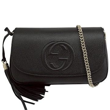 GUCCI 古馳 Soho 系列大LOGO翻蓋斜背鍊包(黑)