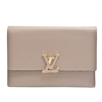 LV M62159 經典Capucines系列Taurillon皮革釦式短夾(卵石色)