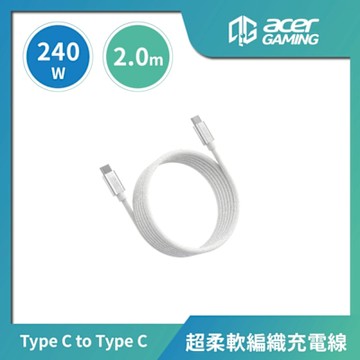 AcerGaming USB-C to USB-C珪膠編織線2.0m-白