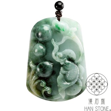 【森茂珠寶】緬甸天然翡翠A貨 冰種春帶彩蝠(福)鼠運財墜子 B1009