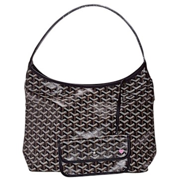GOYARD 經典HOBO BAG系列粉色小愛心印花防水帆布單肩購物包(黑色)