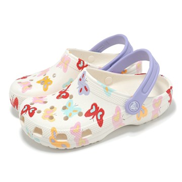 Crocs 洞洞鞋 Classic Butterfly Graphic Clog K 中大童 蝴蝶克駱格 米白 2112550WV