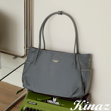 KINAZ 分層大容量輕量防潑水尼龍肩背斜背托特包-天際灰-企鵝系列